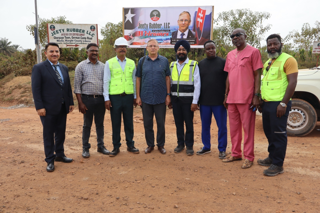 Slovak Ambassador Martin Podstavet, accredited to Liberia with residency in Abuja, Nigeria, has toured the Jeety Rubber Factory and the Salala Rubber Corporation (SRC) in Weala, Margibi County, describing the companies’ investments as a testament to “Liberia’s positive business climate and a reflection of the country’s growing investment potential.”