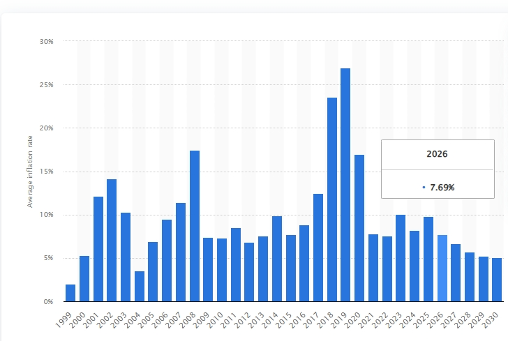 The average inflation rate in Liberia stood at 8.22 percent in 2024. Between 1999 and 2024, the inflation rose by 6.24 percentage points, though the increase followed an uneven trajectory rather than a consistent upward trend. The inflation is forecast to decline by 3.16 percentage points from 2024 to 2030, fluctuating as it trends downward.