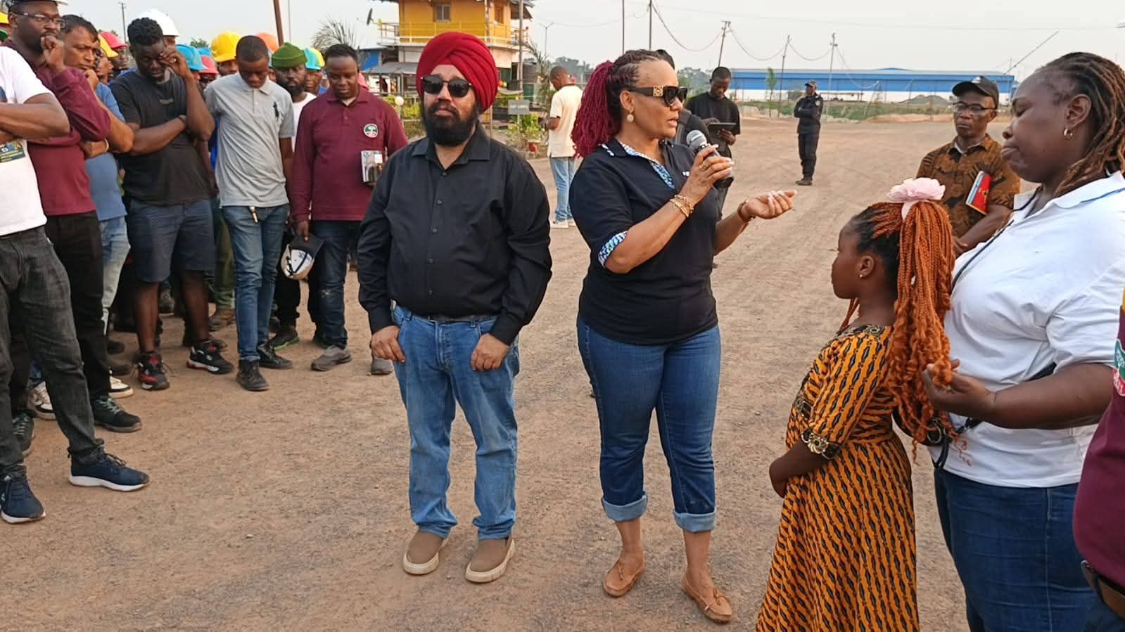 Standing before a group of residents, Madam Logan announced plans — backed by her husband, she said — to renovate the camp’s housing and infrastructure. “Workers deserve better living conditions,” she declared, framing the pledge as an ethical imperative rather than a charitable afterthought.